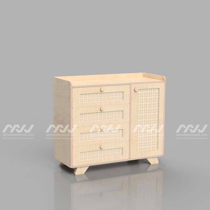 Sản phẩm gồm 4 ngăn kéo rộng rãi, đủ không gian để sắp xếp quần áo thoải mái. Bên trong cánh tủ bên cạnh được bố trí các đợt kệ có thể thay đổi chiều cao, giúp ba mẹ dễ dàng phân loại quần áo hoặc phụ kiện một cách khoa học, đồng thời tối ưu diện tích lưu trữ và giữ cho phòng ngủ luôn ngăn nắp.